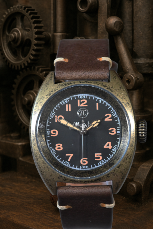 The vintage brass case with artificially aged surface and the classic brown leather strap create a very balanced design. The watch is my first experience with a Chinese (HK) clone of the well-known ETA 2824-2 movement from Switzerland. The movement is very accurate and makes a very good impression. The assembly is a little more demanding than with the well-known NH movements from Seiko. With this movement, I am now a small step further in my experience.