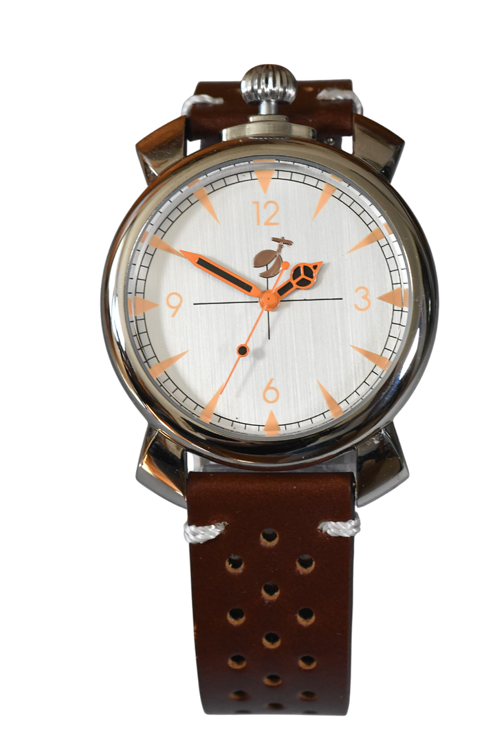 A very interesting and fascinating self-winding mechanical watch that is suitable for both right-handed and left-handed wearers. The modern design with the bright dial and elegant hands also makes this watch interesting for women. The caliber (movement) is an NH35a from Seiko (TMI), which is known for its quality and longevity. Brushed aluminum dial with luminous indices. Polished stainless steel case. The back cover with viewing window allows a view inside.