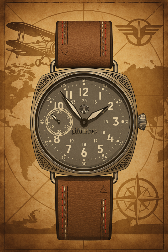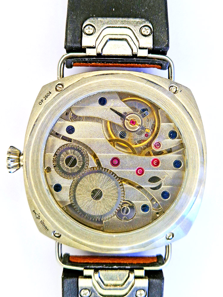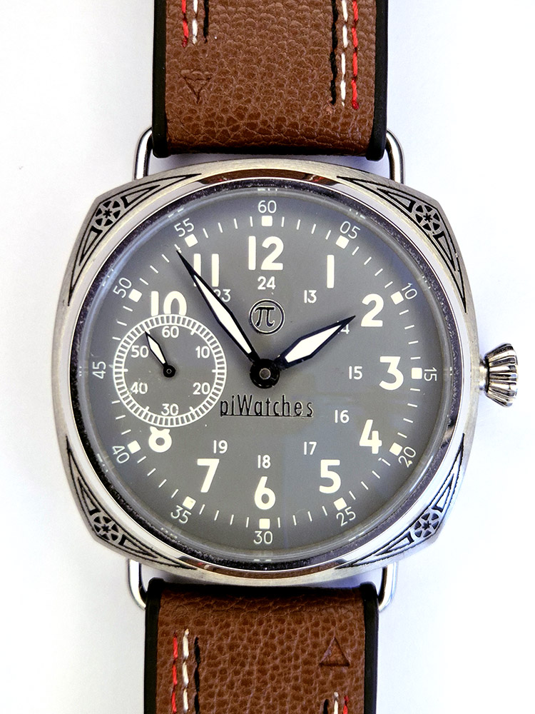 This is my second watch with the ST3601 movement from the factory in Hong Kong. I am very satisfied with the movement. It is very easy to adjust and seems to be very robust. A great, very simple but sophisticated design. The watch runs perfectly and is just like it used to be – you have to wind it every day. Really great! The watch has a typical pilot watch style. The stainless steel case It features a patterned design. The crown is screw-down. The very wide strap matches the large appearance of this genuine men's watch.