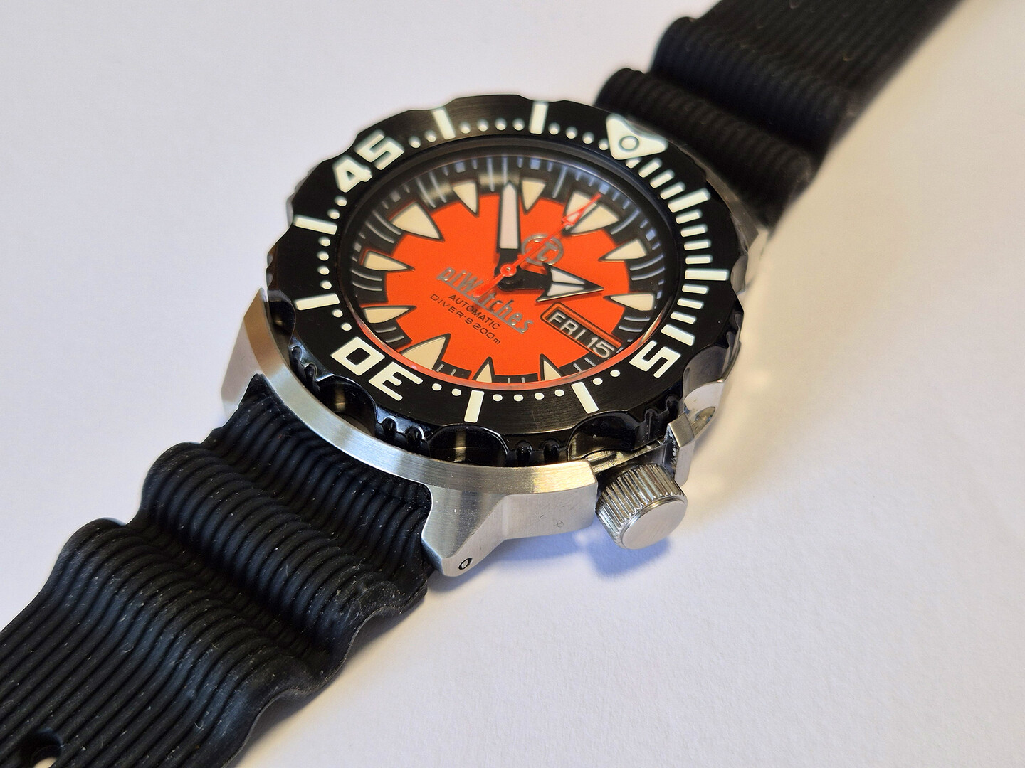 - WATER RESISTANCE: Self-tested up to 6 bar (no information provided by case manufacturer)